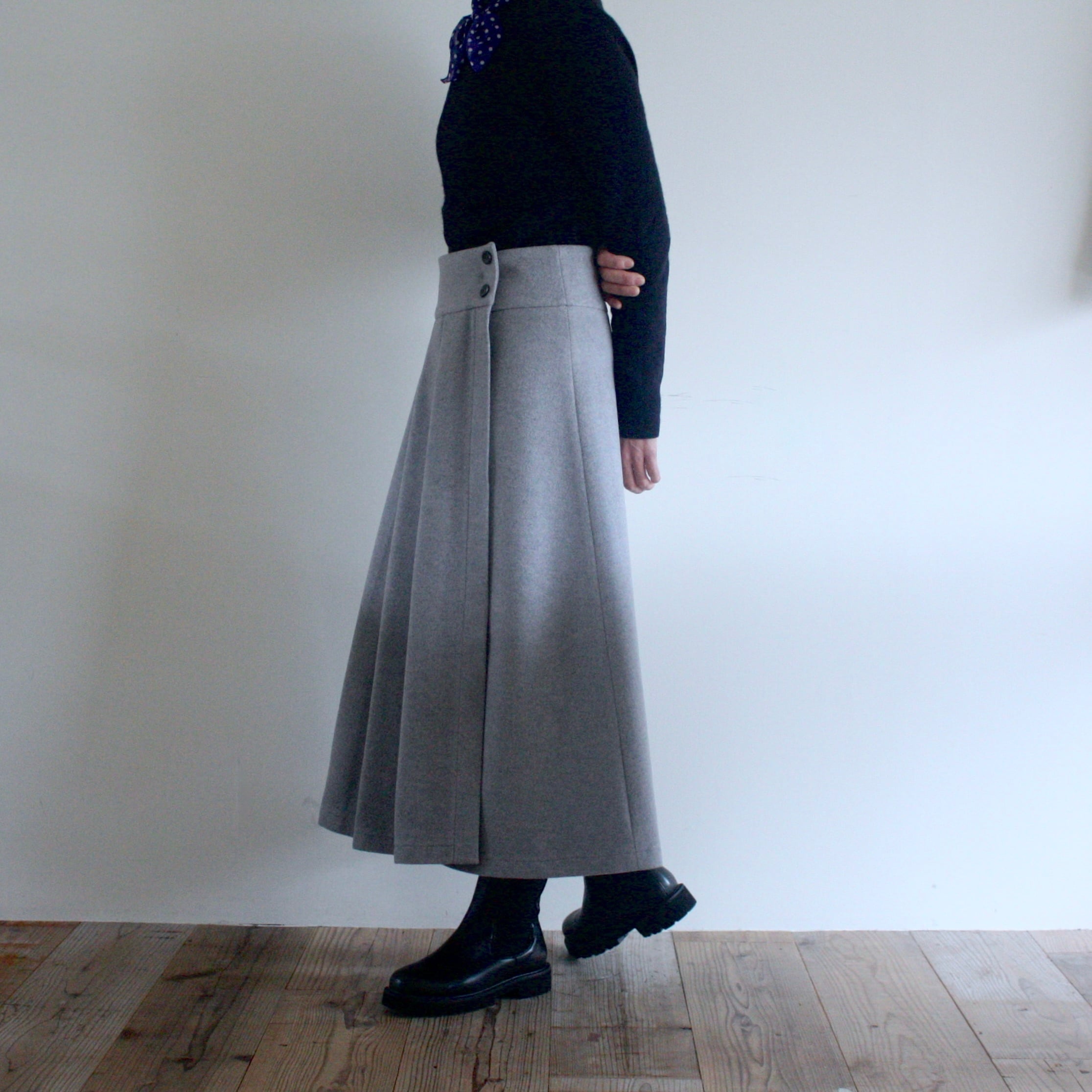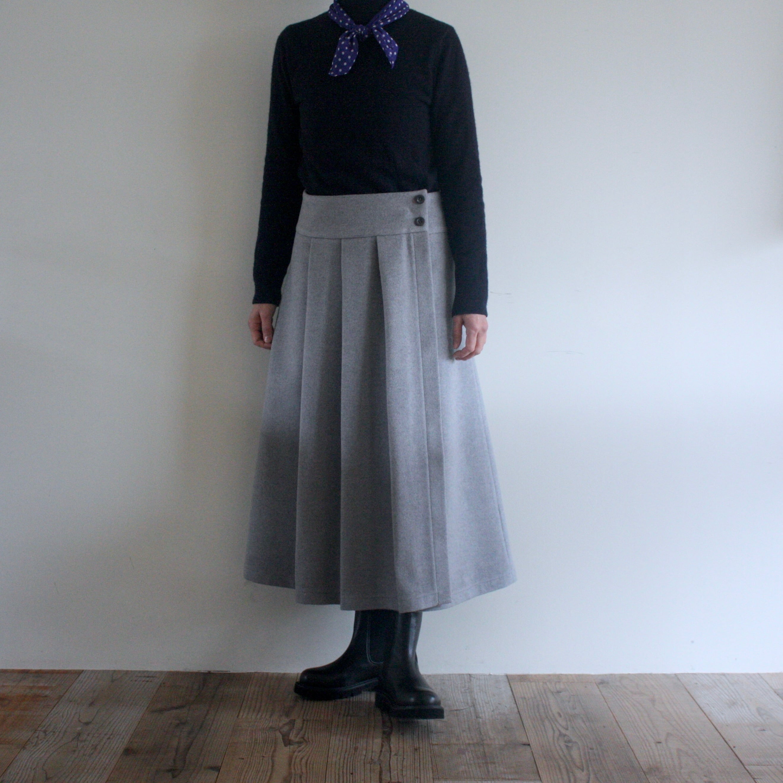 「ウールのプリーツ・ラップスカート」