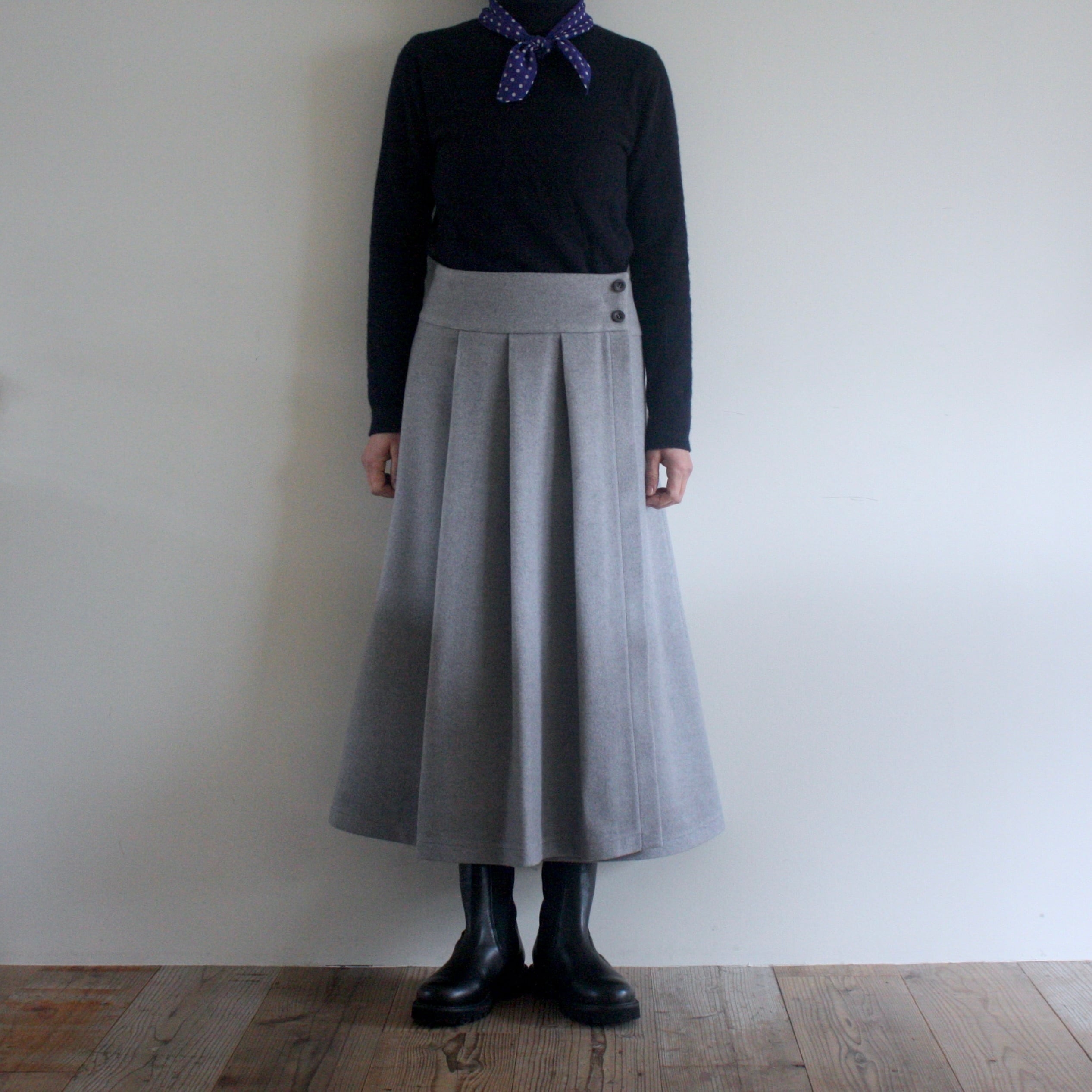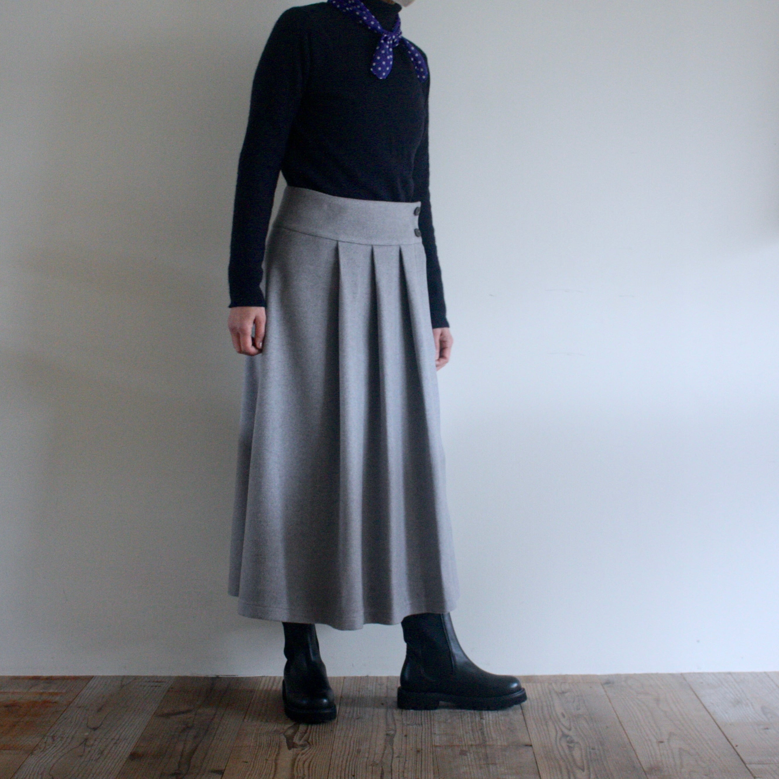 【Resale】オリジナルパターン「ウールのプリーツ・ラップスカート」