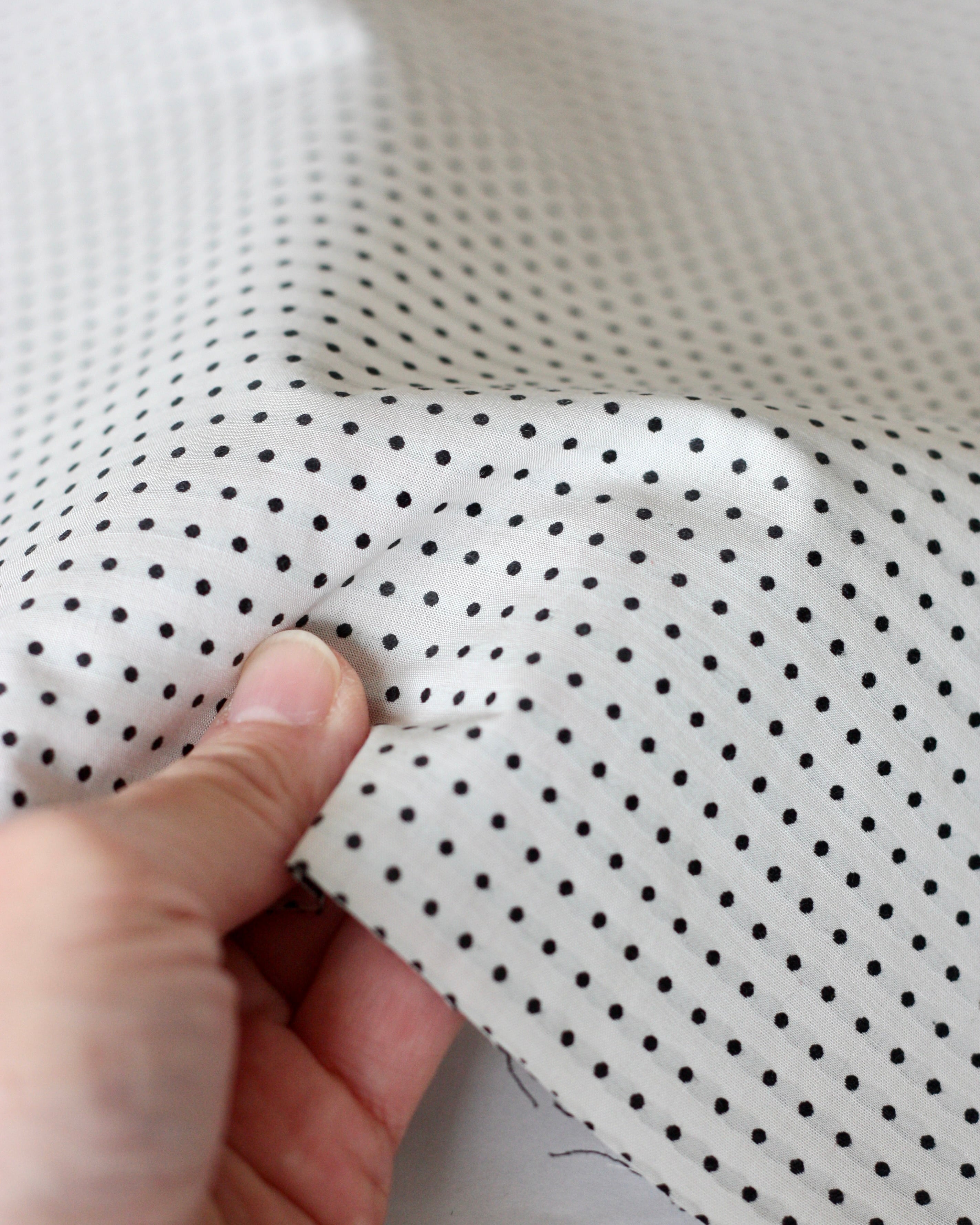 ジャガード織の水玉はプリントとは一線を画す上品な立体感