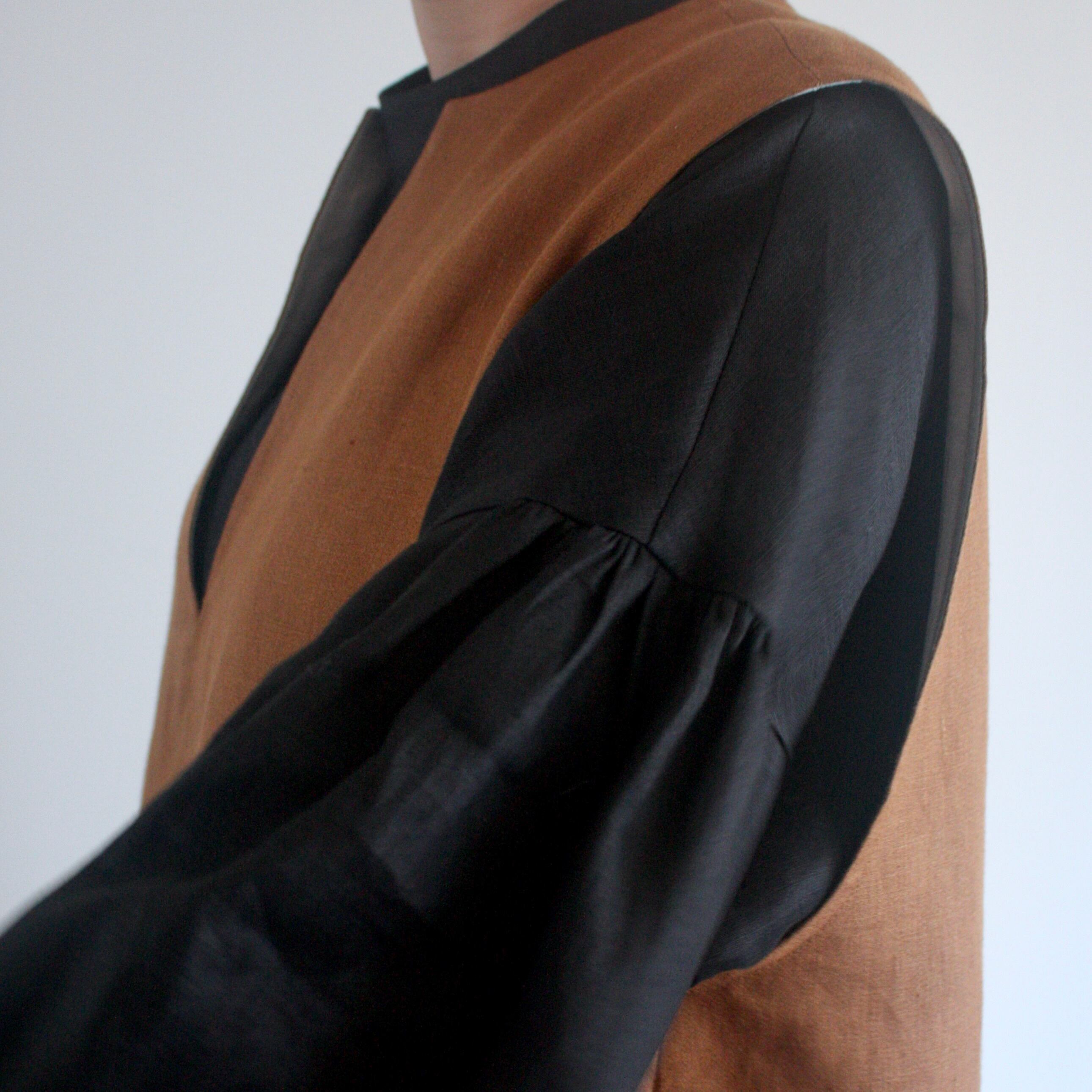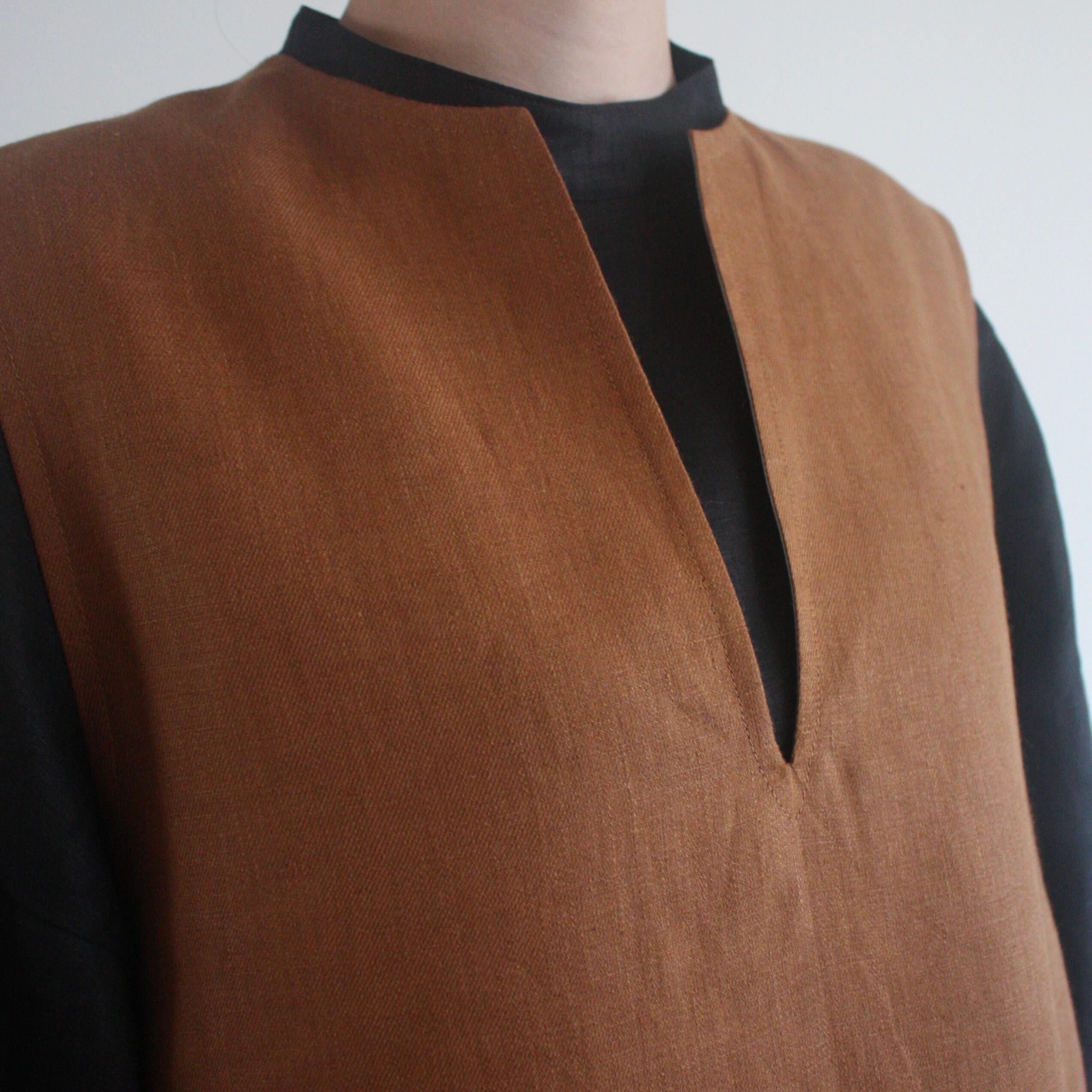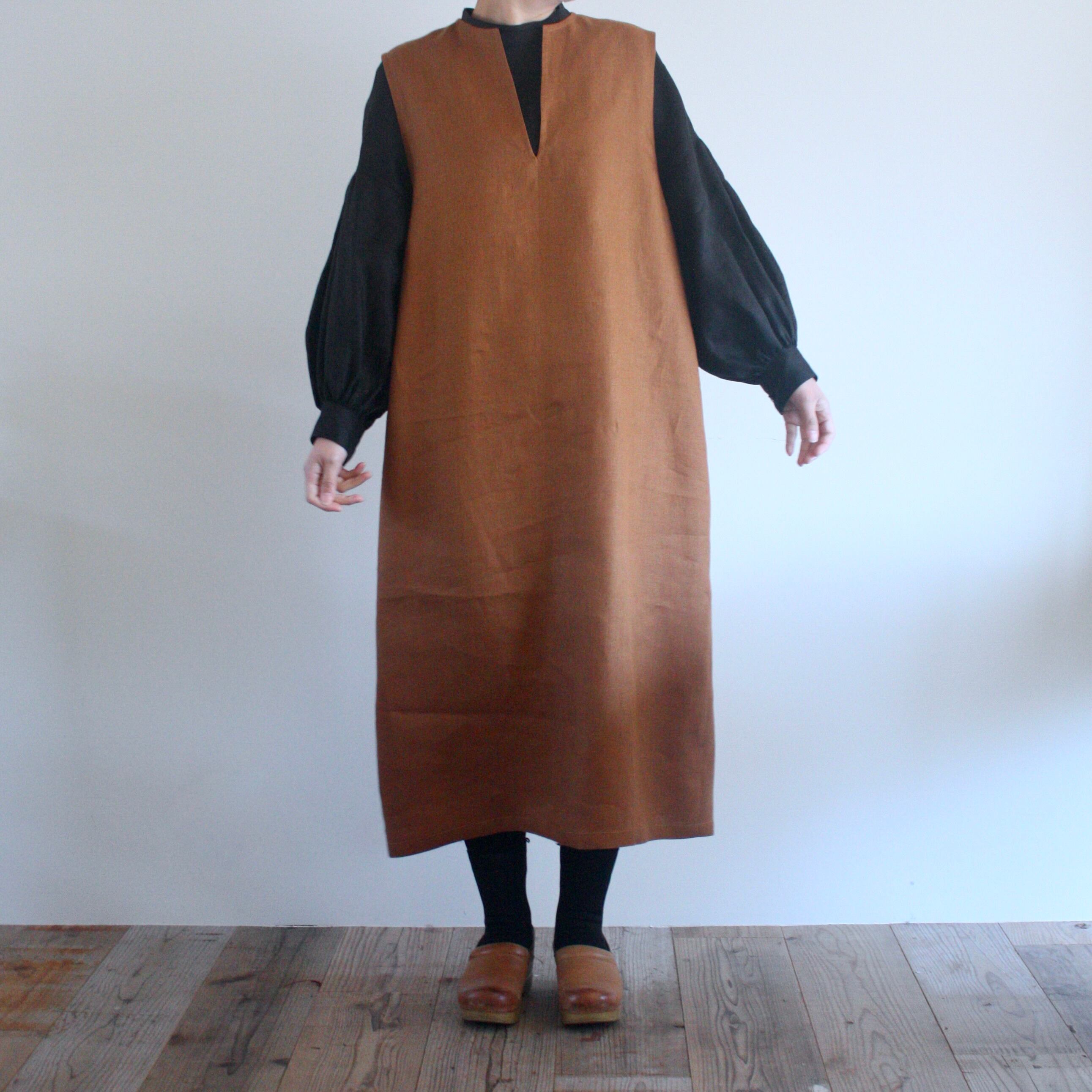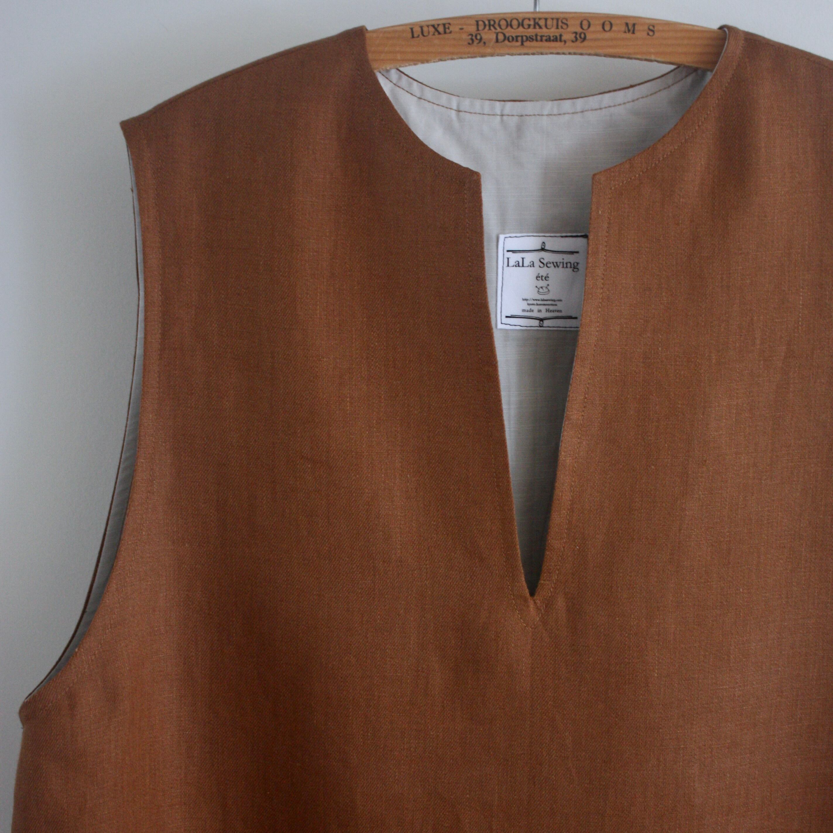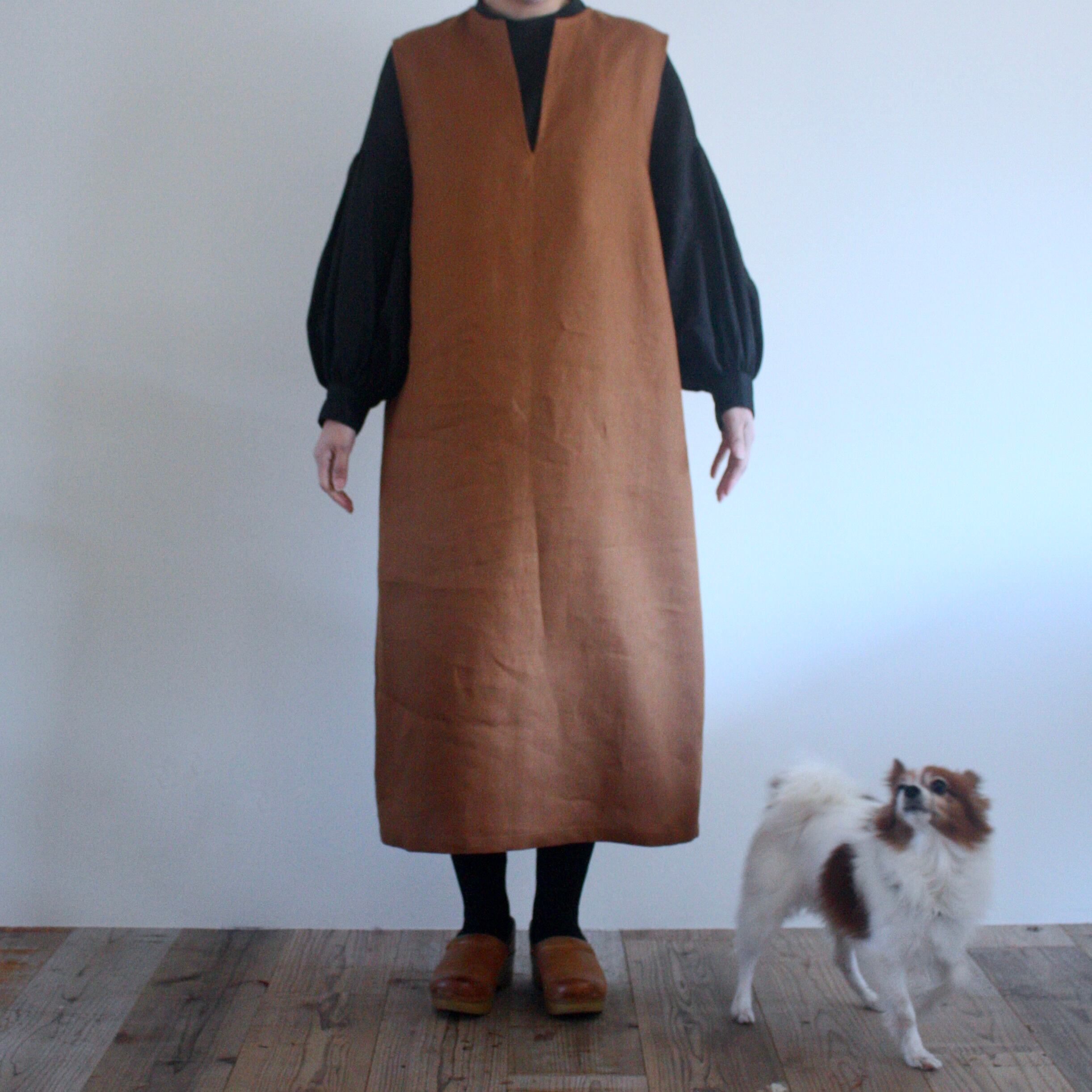 ◇カット済キット◇2月オンラインレッスン「キーネックのロングベスト風ワンピース」(キツネ色)