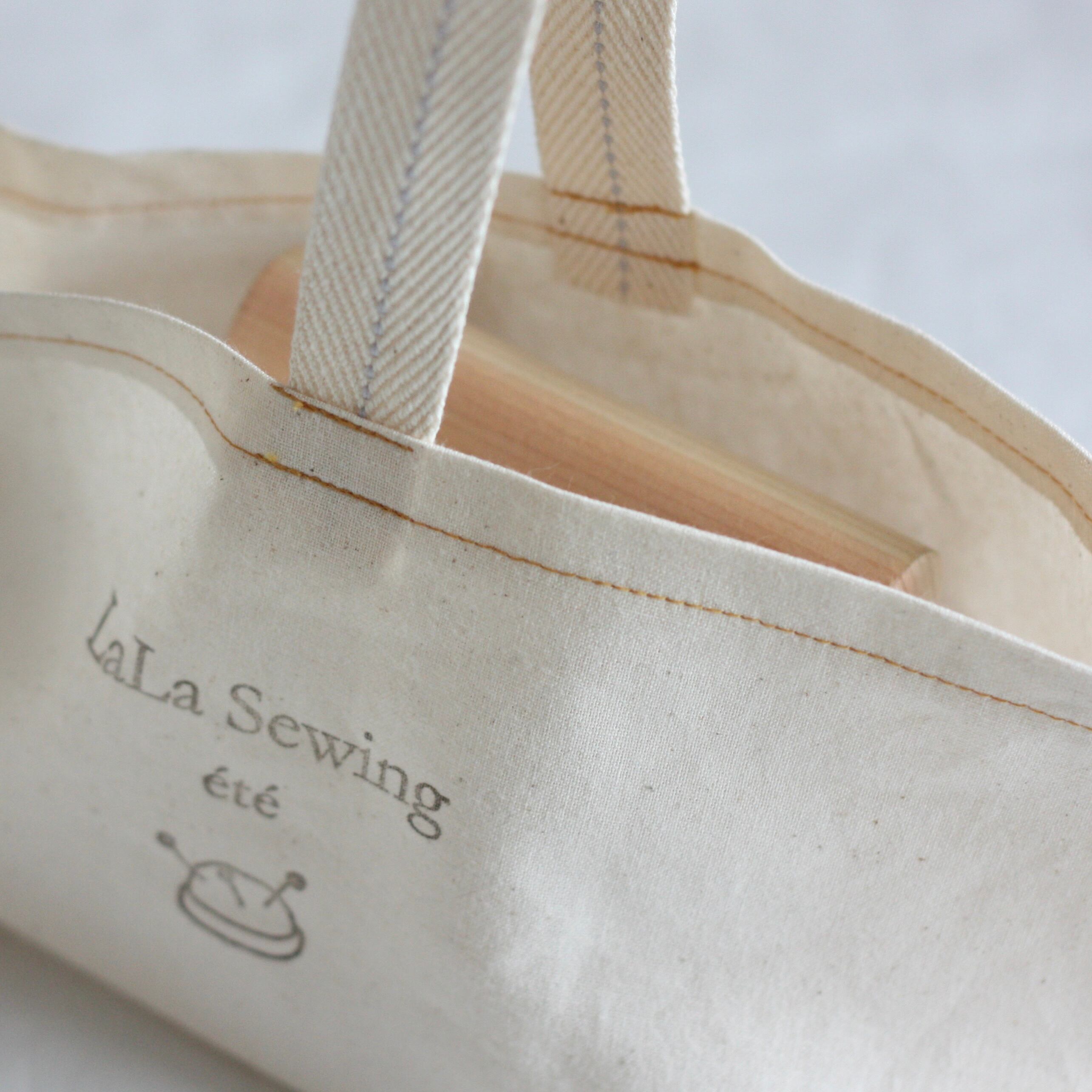 持ち手にはLaLa Sewingの焼印入り